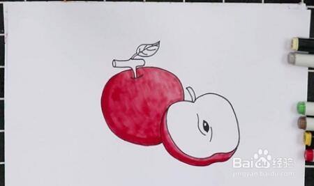 将苹果的叶子涂成绿色,果糊涂成黑色,这样苹果变化好了
