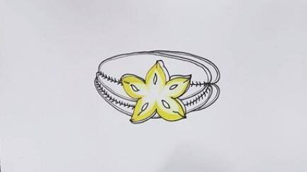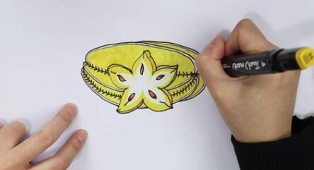 我们将杨桃涂上黄色外部圆圈涂成灰色