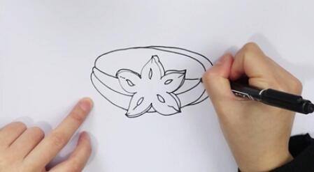 接着我们在5个角的周围画出两个圆圈,做出杨桃的外部轮廓