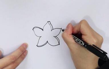 我们先要在纸张适当的位置,可以在纸张的下部画出一个圆圆的五角形状,但是5个角要画成圆角