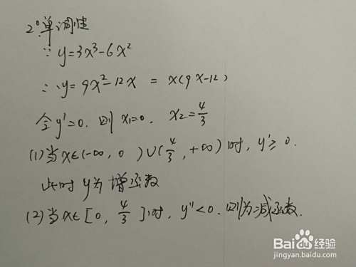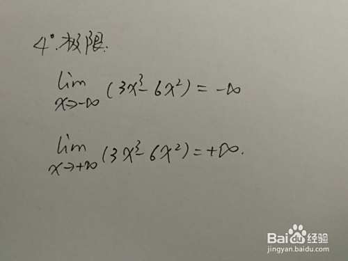 本经验通过函数的定义域、单调性、凸凹性、极限等性质,介绍函数用导数工具画函数y=3x^3-6x^2的图像的主要步骤。