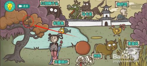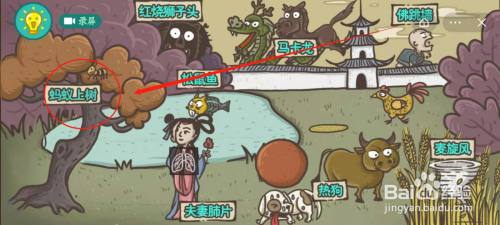 想要制作得到八种食物蚂蚁上树,首先我们需要在画面中找到蚂蚁,如图所示