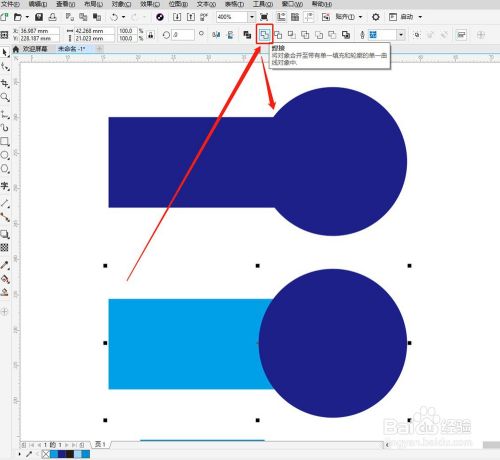 当选中多个对象时,在页面属性栏上也会出现相应的造型操作标识,同样可以进行操作。