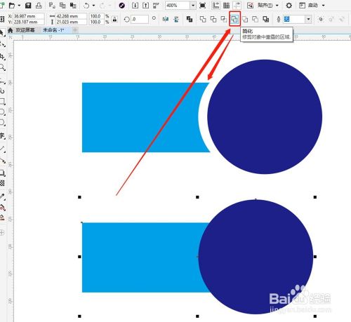 将2个对象重叠后,点击【移除后面对象】,即可删除下面对象并修剪上面对象。
