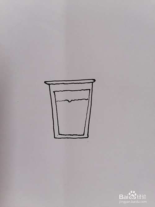 首先在纸上画一条直线和一个倒梯形图案