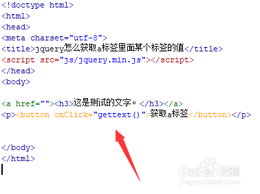 新建一个html文件,命名为test.html,用于讲解jquery怎么获取a标签里面某个标签的值。