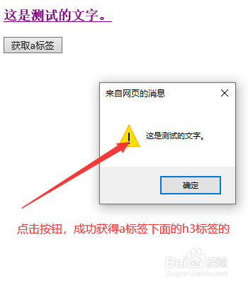 在js标签中,创建gettext()函数,在函数内,通过元素名称获得a标签对象,使用find()方法找到a标签下面的某个标签,例如,找a标签下面的h3标签,通过text()方法便可以获得标签的值。