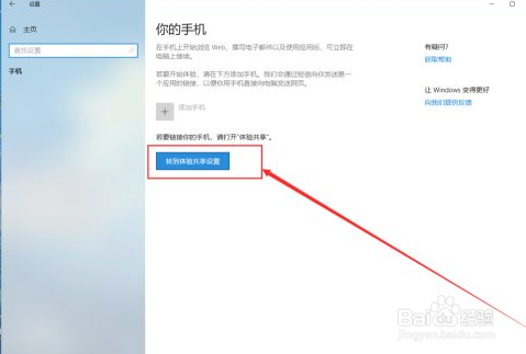 点击手机选项,点击转到体验共享设置按钮。