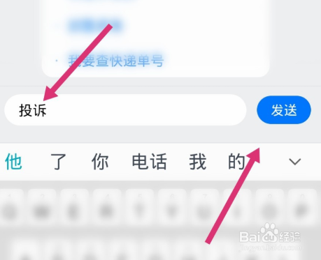 输入要投诉的问题发送即可