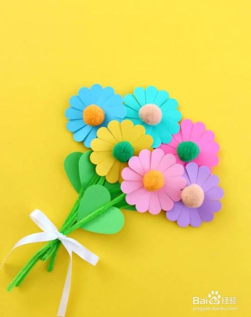 将所有做好的花收拢在一起摆出好看的造型,系上漂亮的蝴蝶丝带结就大功告成啦。