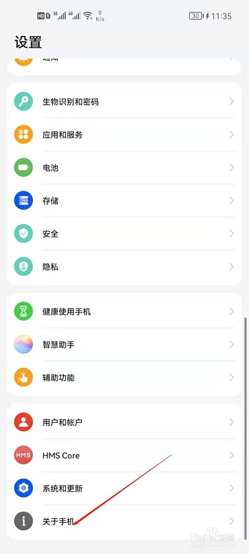 2、点击进入关于手机