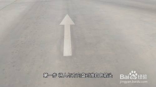 第一步,将人与方向盘对准白色箭头,把车身摆正。注意一定要将车速压稳前行。