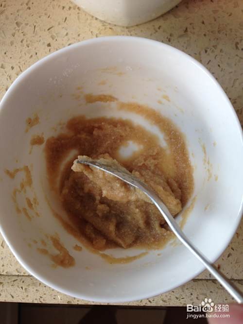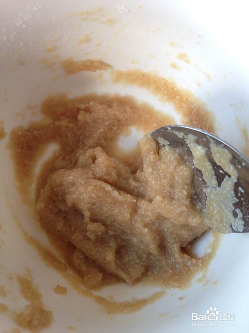 取红枣泥,一勺细米粉,搅拌均匀之后再加一勺细米粉,再拌匀,再加米粉,如果略干,一勺勺加红枣水,顺时针搅拌,稍带半分钟,让米粉充分吸水膨胀。