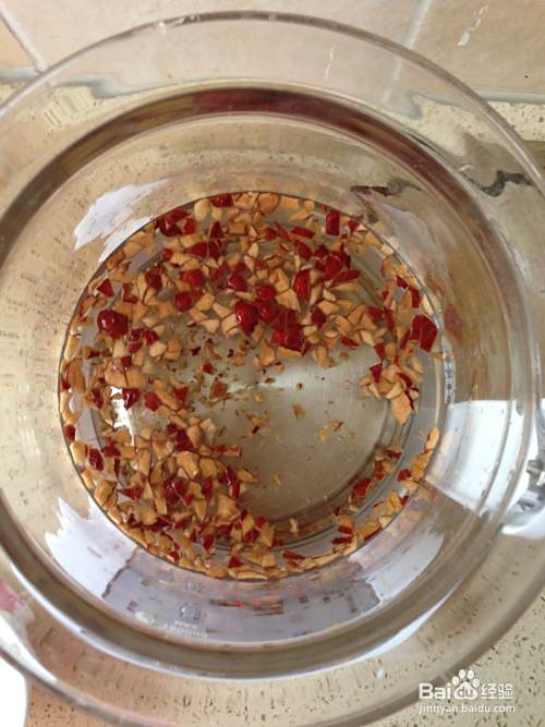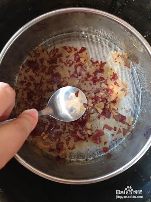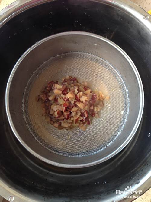 煮好的红枣,隔水取渣,将红枣水单独放置在一个碗中