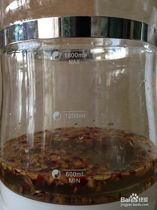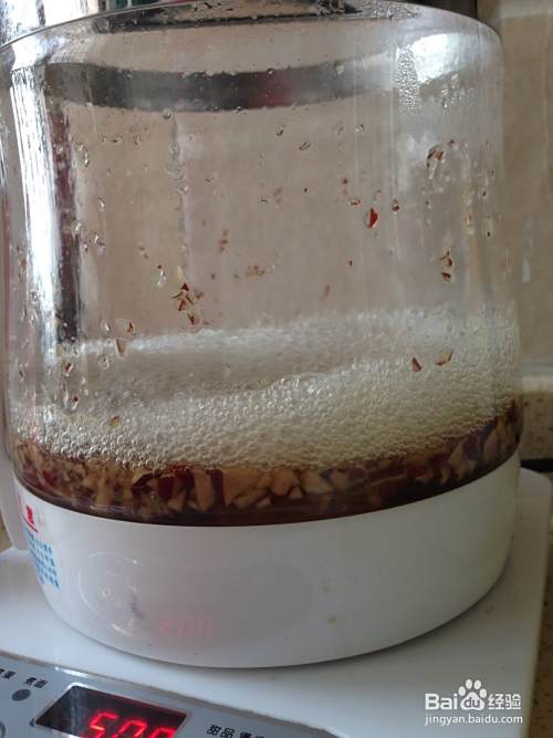 红枣碎放进炖锅中,加适量水,加热烹煮