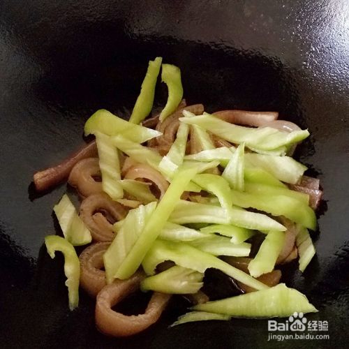 放入尖椒翻炒,加入盐,蚝油翻炒。