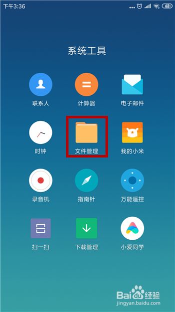 打开小米手机,在系统工具中点击打开【文件管理】。
