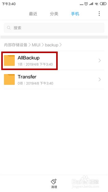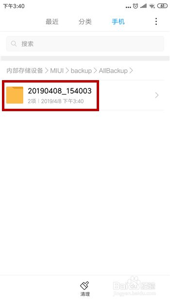 在这个文件夹里显示的是备份日期的文件夹,比如小编这里显示的就是今天才备份的文件,点击打开这个文件夹。