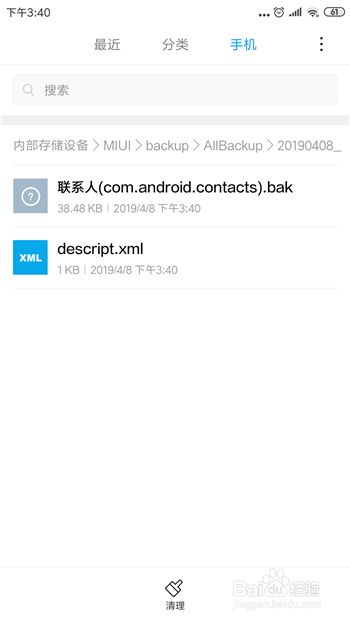 备份文件存储的位置是手机内存,所以点击上方的【手机】。
