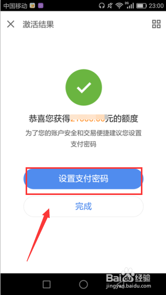 提交信息后,就会获得自己的额度,点击设置支付密码就可以了。