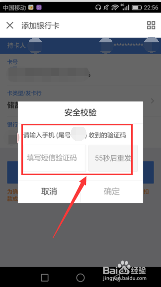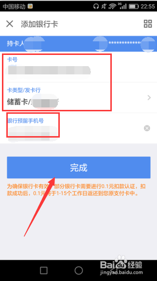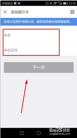 在这里需要添加自己的一张银行卡,输入名字和银行账号