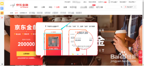 进入京东金条页面,点击-立即借款,就会在右侧延伸出一个二维码界面,需要手机扫描二维码,下载京东金融