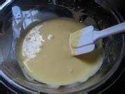 蛋糕卷做法: 蛋黄放入油,奶,和糖拌至油水混合