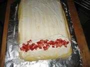 把蛋糕卷起来,两边封口,放冰箱冷藏20分钟定型,就可切块食用了。