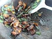 锅里下油烧热,爆香姜片及一部份蒜苗。