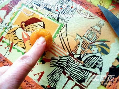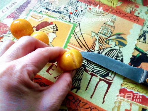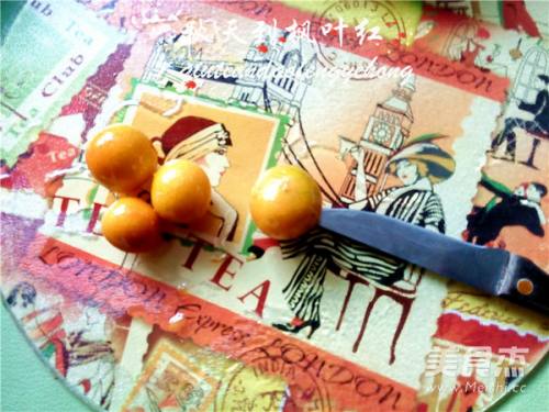 3然后用手指按压扁(这时里面的籽会松离桔体可以去除掉)
