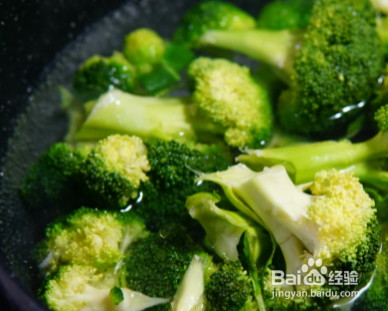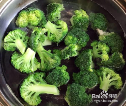 接着锅中加水,放入一勺盐,半勺食用油,水煮开以后,加入西兰花煮2分钟至8成熟即可。