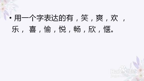 用一个字表达的有,笑,欢 ,乐, 喜,愉,悦,畅,欣。