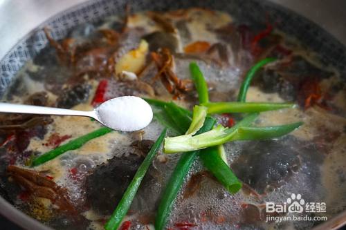 放入葱段,盖上锅盖先用小火慢慢烧开,加入盐再调至中火煮十分钟左右。