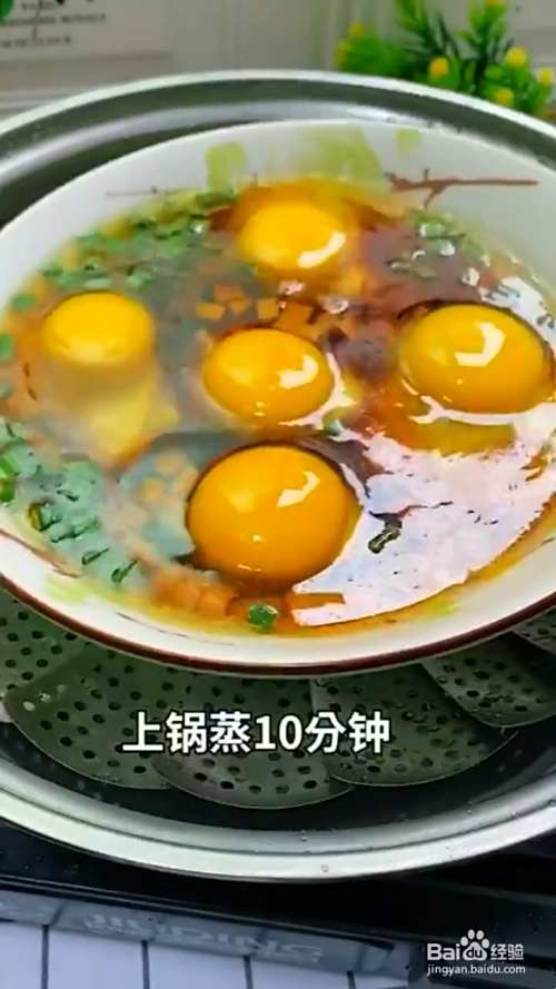 倒入5个鸡蛋上锅蒸10分钟,美食完成。