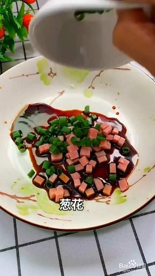 首先碗中加入10克生抽10克火腿丁