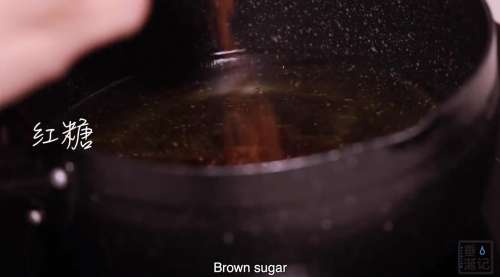 锅中不放油,放芝麻下去抄熟,另起锅放油加入红糖,用筷子搅拌。