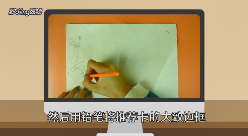 用铅笔将推荐卡的大致边框勾画出来,以荷花边框为例。