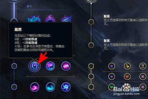 超然符文:加快技能急速,11级后参与击杀使基础技能冷却缩短20%。