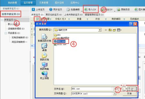 第三,勾选出售中的宝贝,再将用工具处理后的数据包导入出售中的宝贝上传。