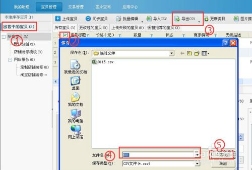 第一,同步淘宝助理,勾选出售中的宝贝,导出数据包。
