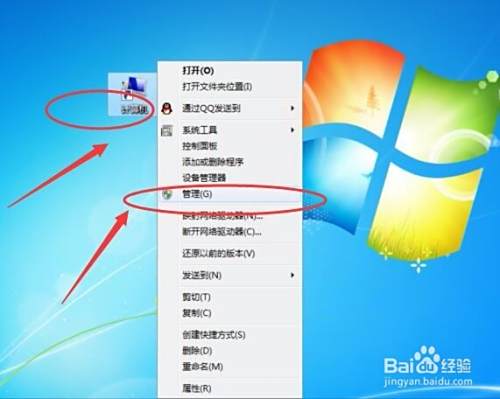 打开电脑之后,找到我的电脑这个图标,然后用鼠标右击它,在选择管理的选项就可以了。