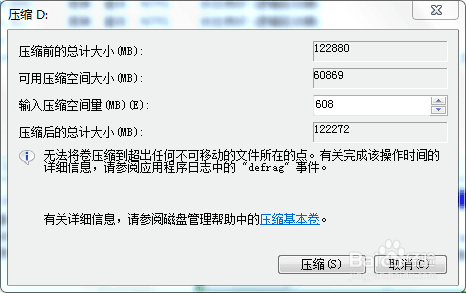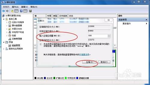 然后输入压缩空间量,再压缩给其他盘就可以了,点击确定压缩按钮。