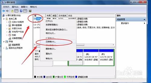 然后比如来给D盘压缩一下吧,假设D盘的内存比较大,可以分给其他盘。就选中D盘,在右击D盘选中压缩卷。