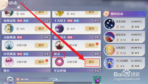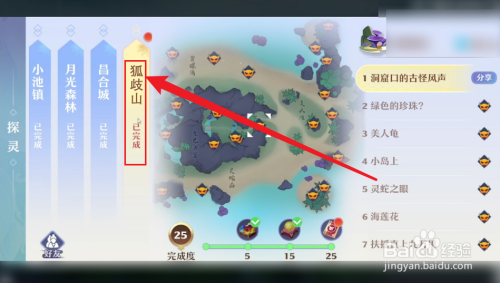 如图所示与狐歧山灵兜兜完成剧情对话后即可完成探灵获得活动奖励