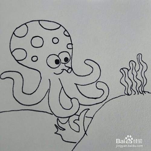 然后画出章鱼的眼睛和嘴巴。