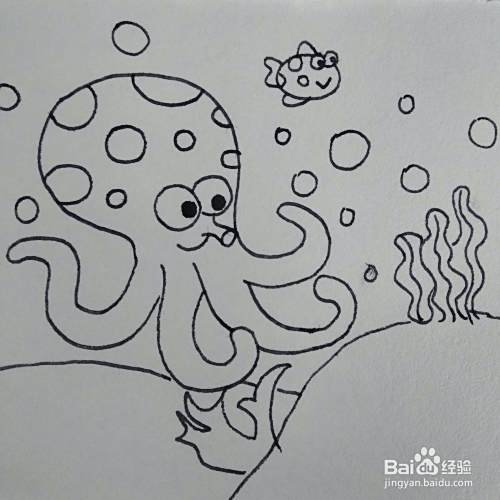 最后画出周围的气泡已经小鱼就可以啦。