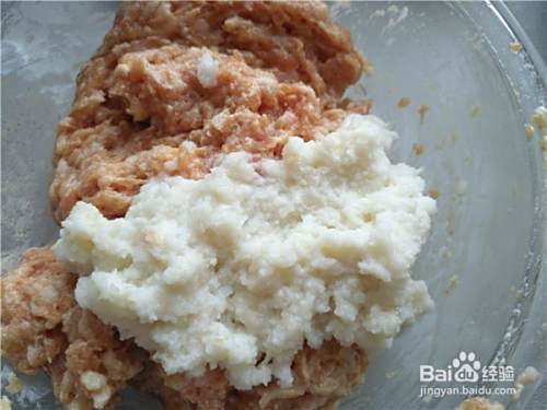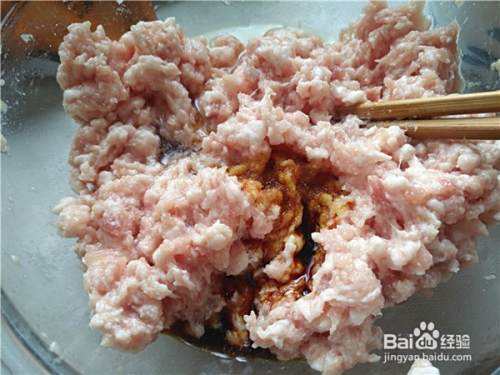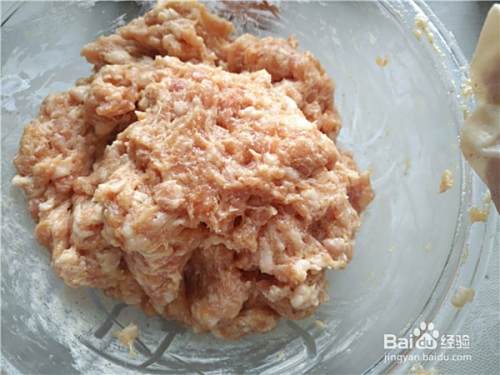 搅拌好的肉,用手多打几次,打的时候,加入适量生姜水
