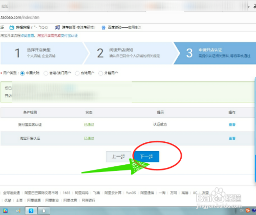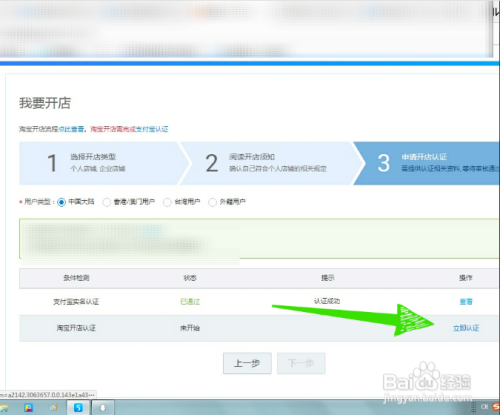 第六步:手机上提交认证信息,认证成功后,网页上会弹出已通过认证点击下方的“创建店铺”。