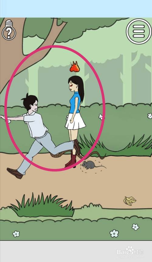 男主看到蛇,就会丢下女主,自己逃跑,游戏过关。