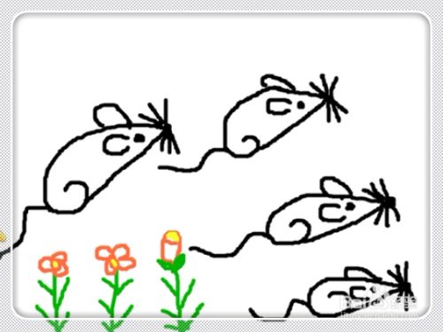 画了4只老鼠了,可是感觉下面还是有些空,再加几朵小花加以点缀,这样画面就显得饱满了,如图所示。